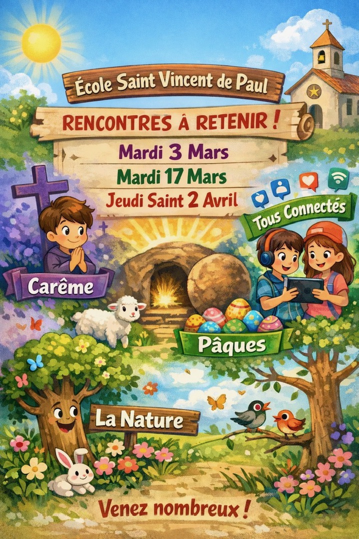 Belle rentrée à chacun. Pour les nouveaux : soyez les bienvenus à l’école Saint Vincent de Paul ! Je nous souhaite une année remplie de joie, d’échanges, d’apprentissages et de coopération au service du développement et de l’épanouissement de vos enfants.